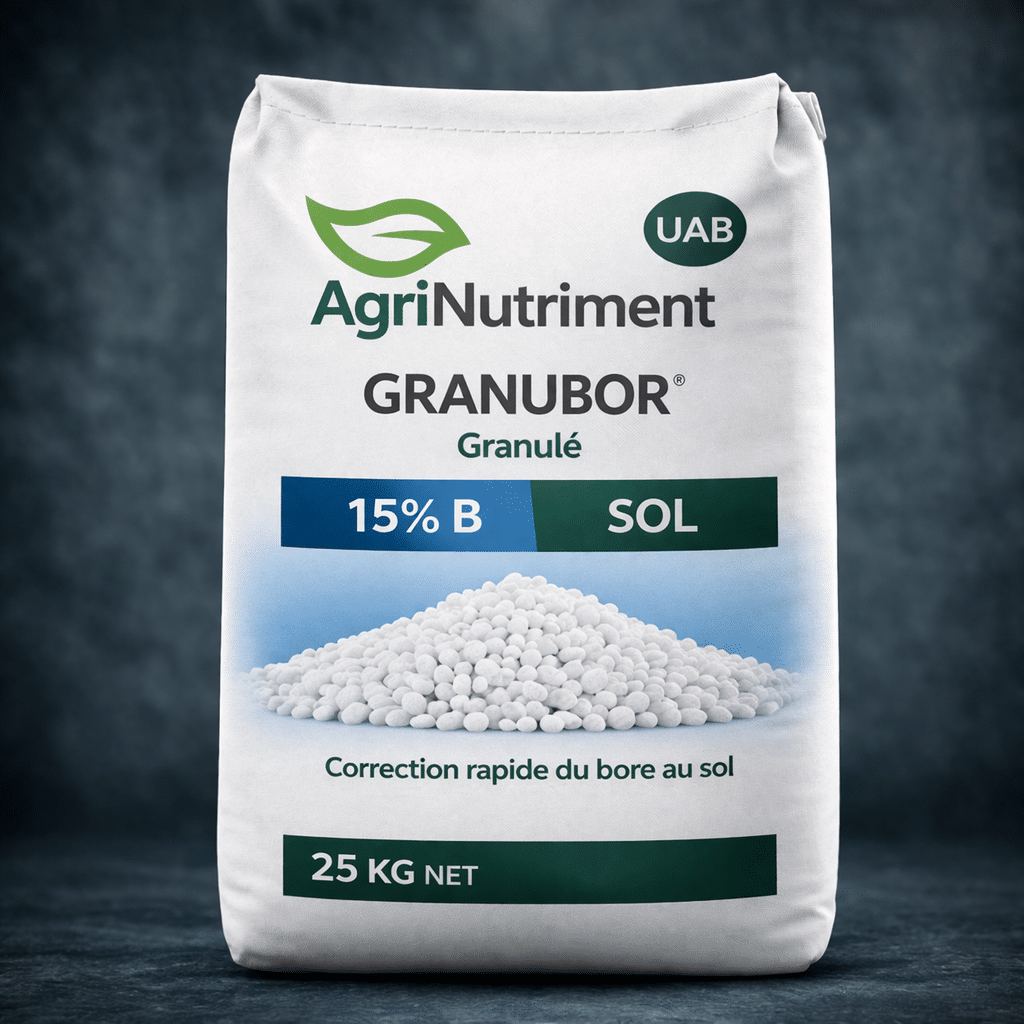 Le granubor est un engrais minéral contenant 15 % de bore (B), sous forme granulée. Il est destiné à corriger les carences en bore dans de nombreuses cultures. Sa formulation garantit une application précise et une libération progressive, adaptée aux itinéraires techniques agricoles.