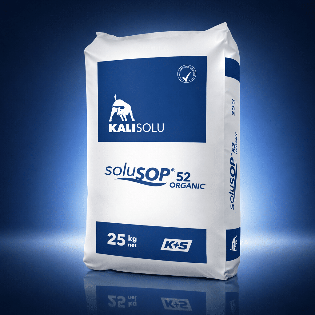 Solusop ® est un sulfate de potassium (K₂SO₄) de très haute pureté, spécialement conçu pour les cultures exigeantes en potassium et sensibles au chlore. Avec 43,6 % K soluble dans l’eau et 18 % S, il s’agit d’un engrais minéral à forte concentration, permettant un apport efficace et précis, aussi bien en fertirrigation qu’en application foliaire.