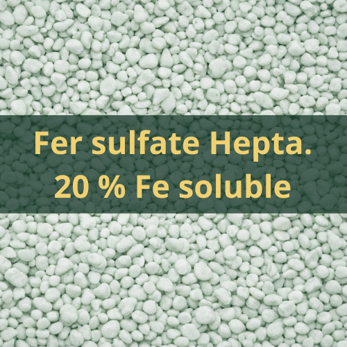 Le sulfate de fer heptahydraté est une source minérale de fer ferreux (Fe²⁺) associée à du soufre sulfate, destinée à la correction des déficiences en fer lorsque celui-ci devient indisponible dans la terre.